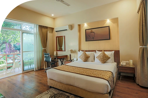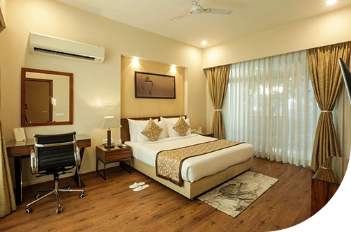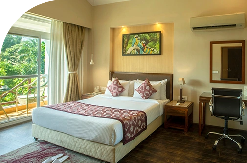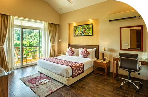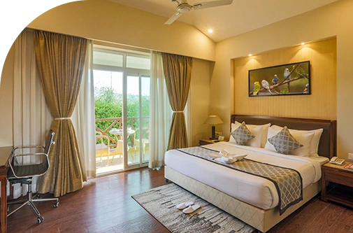 Resort De Coração Resort, an upscale flagship hotel, is a desirable destination in the verdant wilds of Corbett. The marquee 4-star property is strategically positioned in proximity to the Jhirna and Dhela safari zones, magnificently blending the mysticism of nature with the comforts of modern-day luxuries. Recline away in modish rooms furnished with best-in-class upholsteries, chic linens, and well-defined amenities. The property is spanned across 12 acres and is home to 60 lavish rooms, a recreation centre, banquet space, a gymnasium, and more.